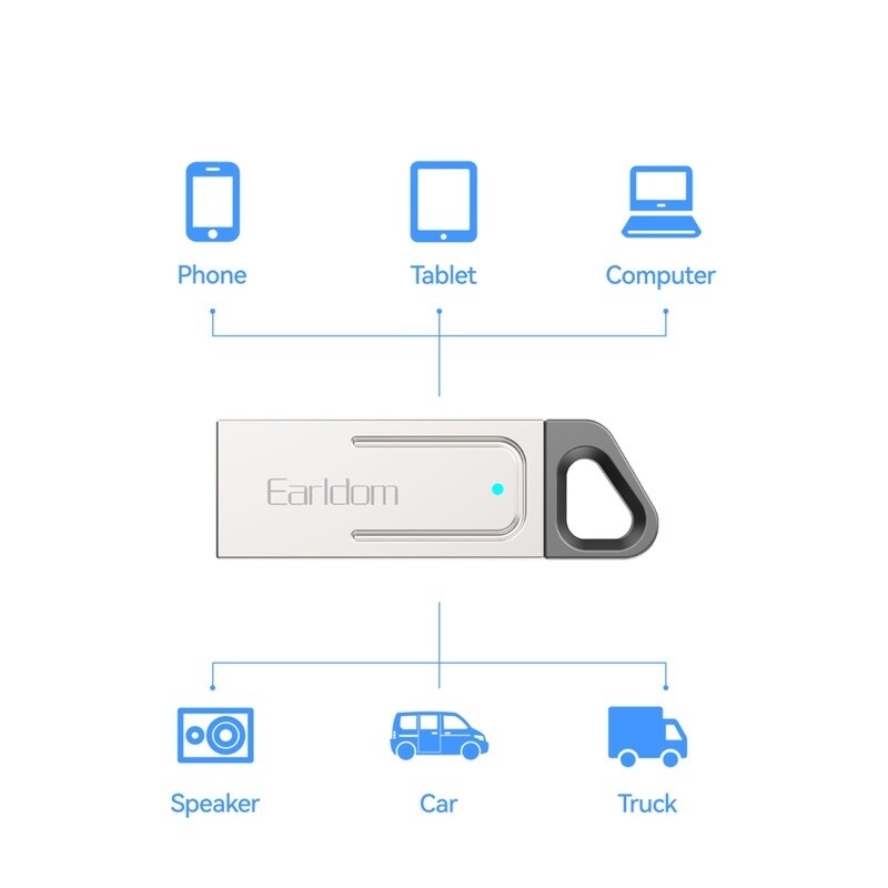 این گیرنده بلوتوث از برند ارلدام مدل ET-BR20 است . از طریق USB به سیستم پخش ماشین (یا شارژر فندکی، پاوربانک و …) وصل شده و موسیقی را از طریق بلوتوث از گوشی دریافت و از طریق USB روی سیستم ماشین پخش می کند.