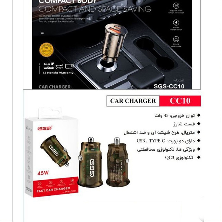 شارژر فندکی SGS CC-10 یک شارژر قدرتمند و ایمن برای استفاده در خودرو است که با پشتیبانی از شارژ سریع (Fast Charge) و ارائه پورتهای کاربردی، امکان شارژ همزمان دو دستگاه را فراهم میکند. این مدل با داشتن تراشه هوشمند و طراحی مستحکم، انتخابی مناسب برای رانندگان، سفرهای جادهای و استفاده روزمره در خودرو است.