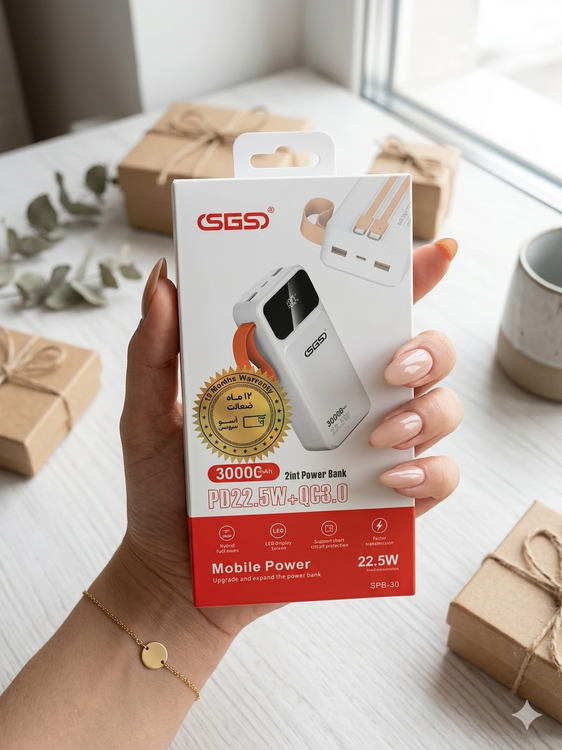 -ظرفیت قوی 30000mAh: با این ظرفیت بینظیر، پاوربانک SGS SPB-30 میتواند چندین بار دستگاههای شما را بهصورت کامل شارژ کند، بنابراین نیازی به نگرانی درباره خالی شدن باتری در طول روز نخواهید داشت.
