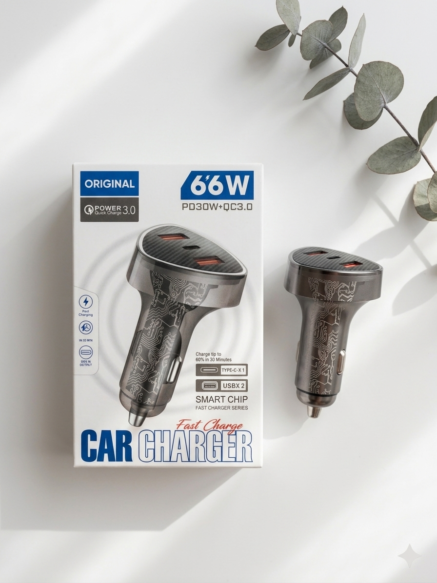 شارژر فندکی ۶۶w سه پورت فست شارژ