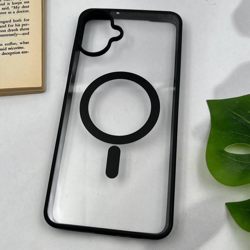قاب MagSafe مخصوص Samsung Galaxy A06، با طراحی دور مشکی و فناوری اتصال مغناطیسی، انتخابی شیک و کاربردی برای دارندگان A06 است.
